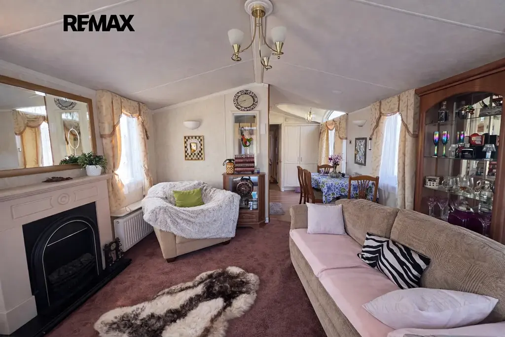 Součástí prodeje je obytný mobilheim značky Willerby Holiday Homes, model The Vogue o rozměrech 14 × 4 metry, přibližně 6 let starý. Poskytuje komfortní zázemí pro rekreační pobyt a je připraven k okamžitému užívání.