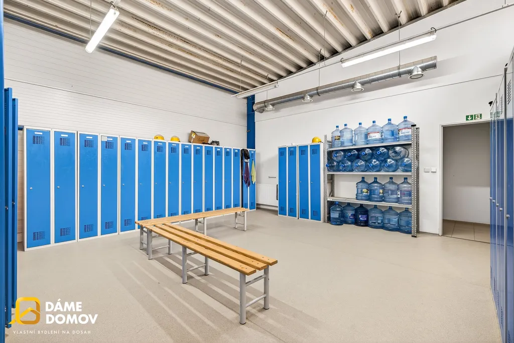 Součástí objektu je také administrativní zázemí v patře, kde najdete kanceláře, jídelnu i sociální zařízení – vše potřebné pro pohodlný chod firmy na jednom místě.