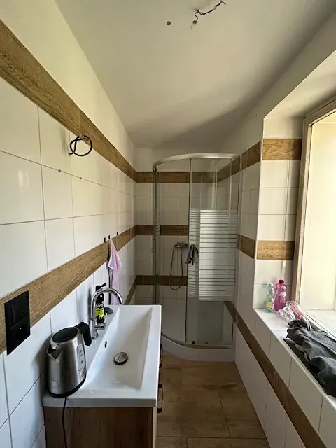 V části domu jsou nové rozvody elektřiny, dále vodovodní rozvody a odpad. Dům má nově zrekonstruovanou koupelnu a přípravu pro kuchyňskou linku. Jinak je dům v původním, ale udržovaném stavu. Dům je připojen na elektřinu, plyn, obecní vodovod a obecní kanalizaci. Plyn se v současné době nevyužívá, ale nachází se tam plynový kotel. Topení je řešeno krbovými kamny v kuchyni případně kotlem na tuhá paliva, ohřev vody el. bojlerem.
