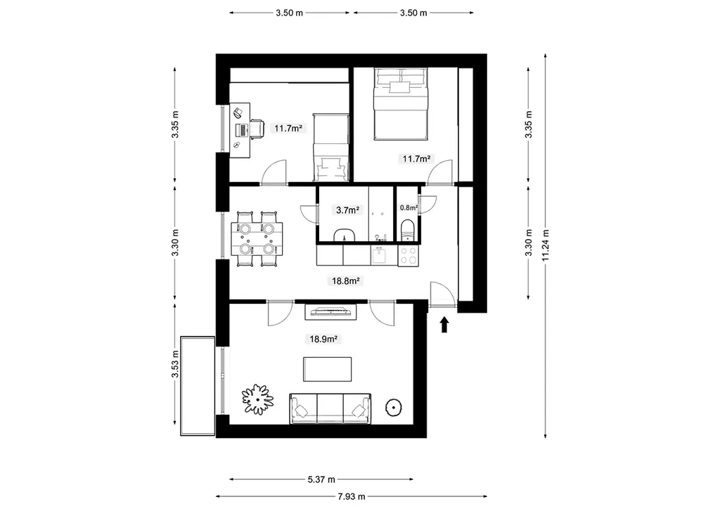Celková podlahová plocha bytu činí 73 m2 a dispozice nabízí dostatek prostoru pro pohodlné rodinné bydlení i zajímavou investiční příležitost. Nemovitost je v původním stavu, což novému majiteli otevírá možnost realizovat rekonstrukci dle vlastních představ a vytvořit si moderní bydlení přesně na míru.