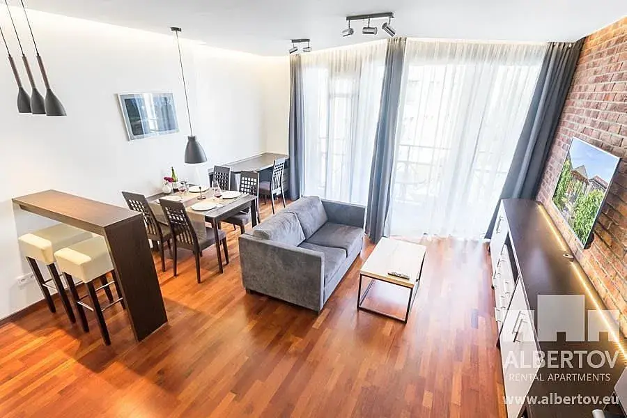 Zdařile dispozičně řešený jedno-ložnicový apartmán se nachází v jedinečně koncipované rezidenci Albertov Rental Apartments s celkovým počtem 267 nájemních bytů, s recepcí a 24/7 pohotovostní technickou linkou.