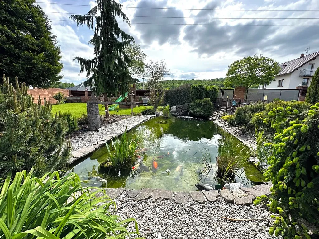 • Okrasné jezírko s Koi kapry (renovace duben 2025)