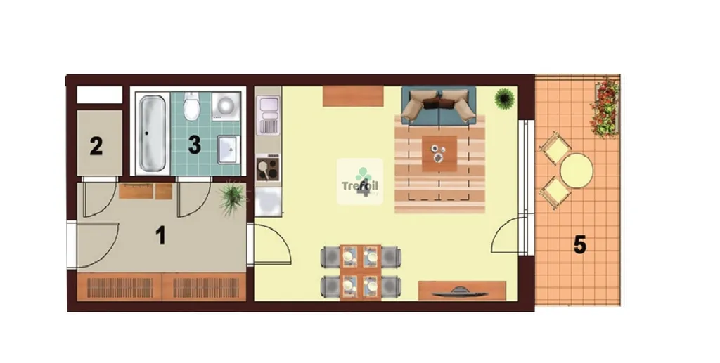 Byt se nachází ve 2. nadzemním podlaží a má obytnou plochu 43 m². K bytu náleží balkon 8,33 m² orientovaný do klidného vnitrobloku. Okno je opatřeno venkovní žaluzií.