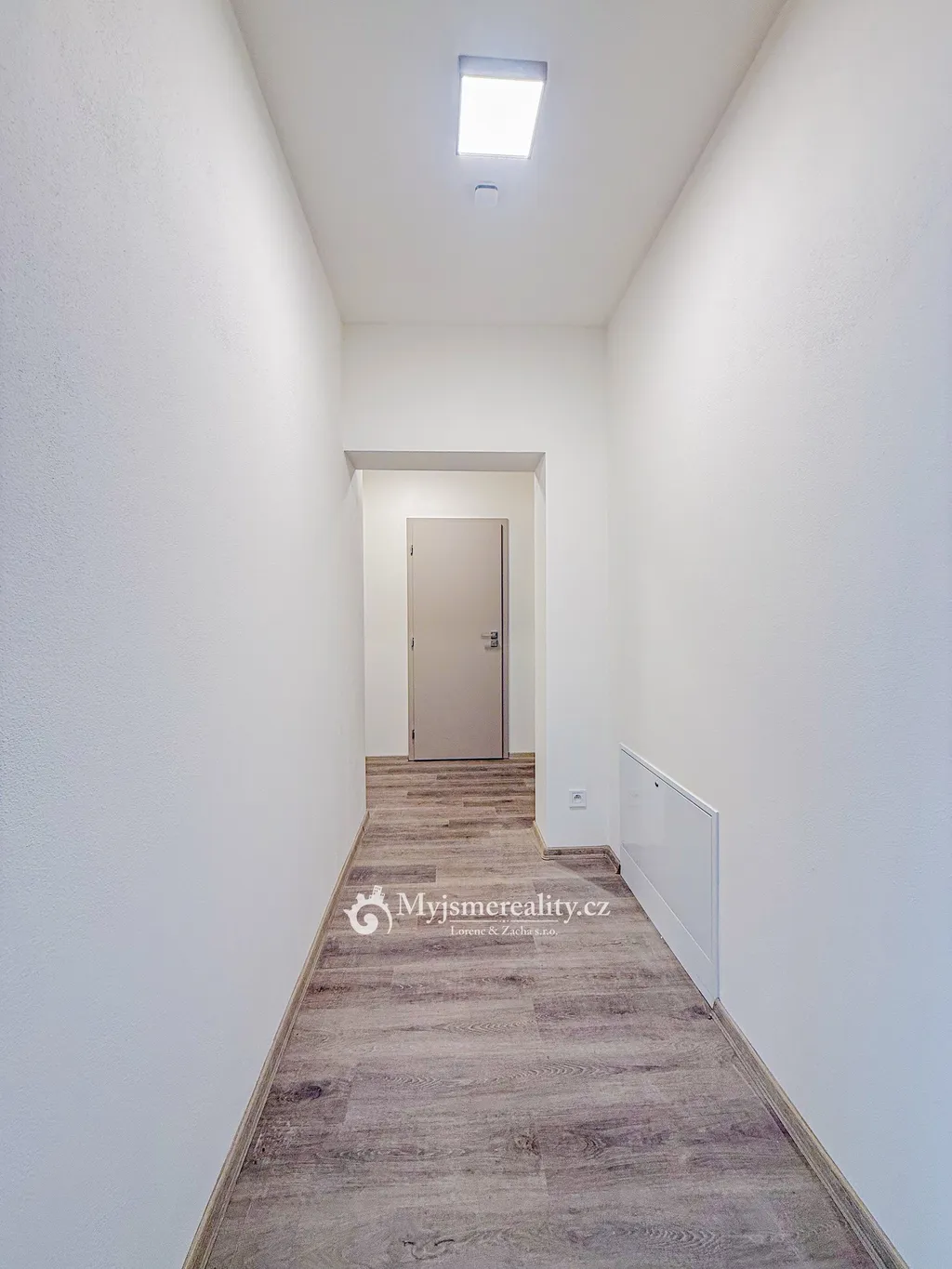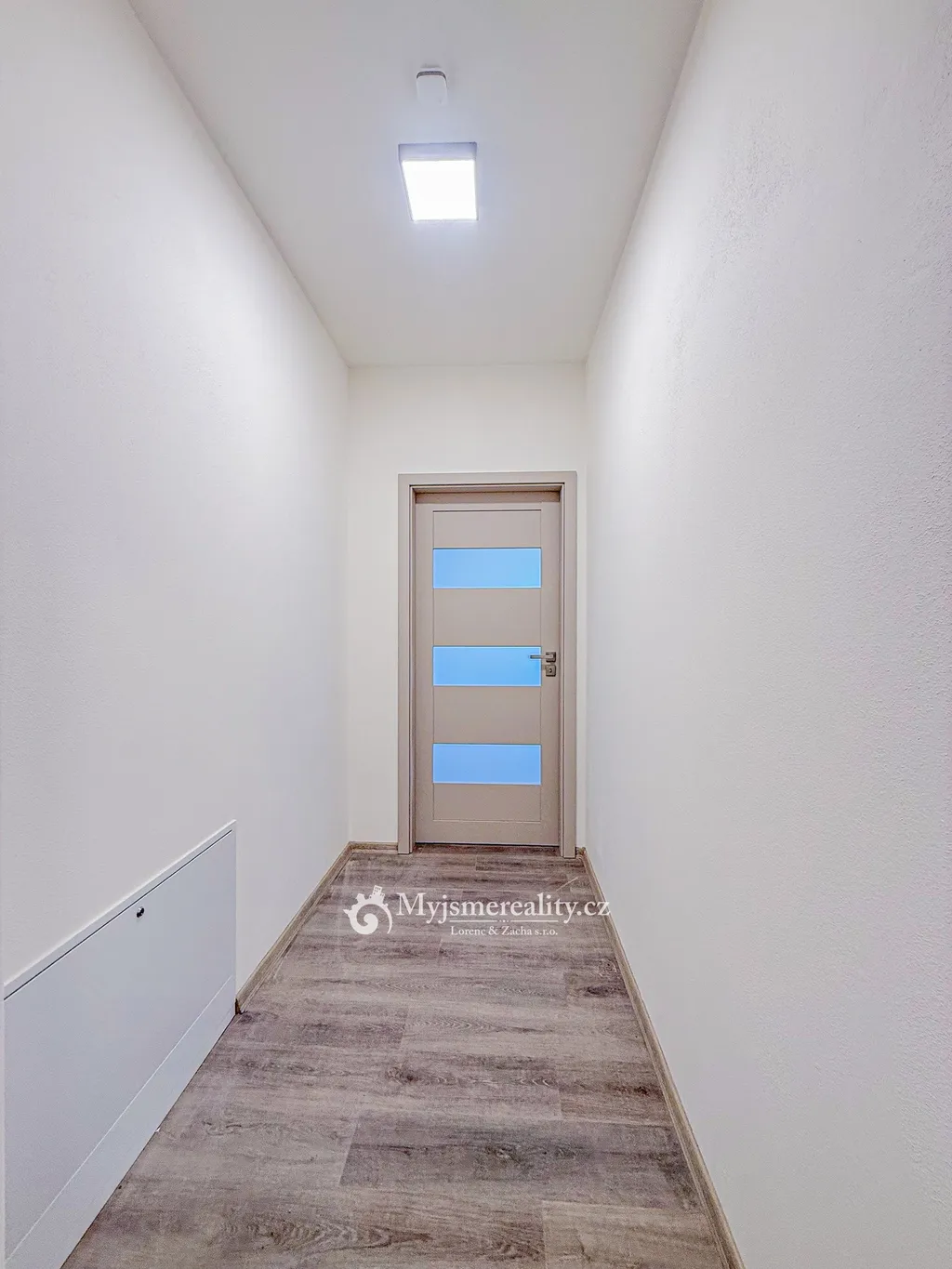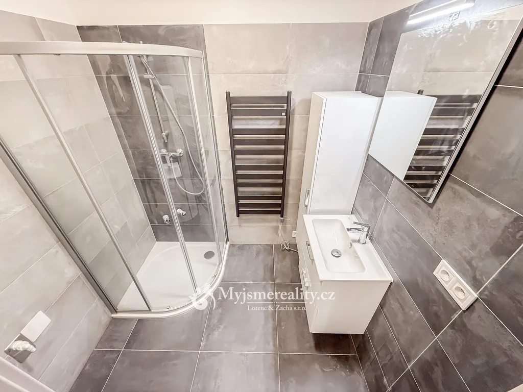 Dispozičně je byt velmi prostorný a kromě samostatné toalety s umyvadlem nabízí také technickou místnost s prostorem pro pračku a sušičku.