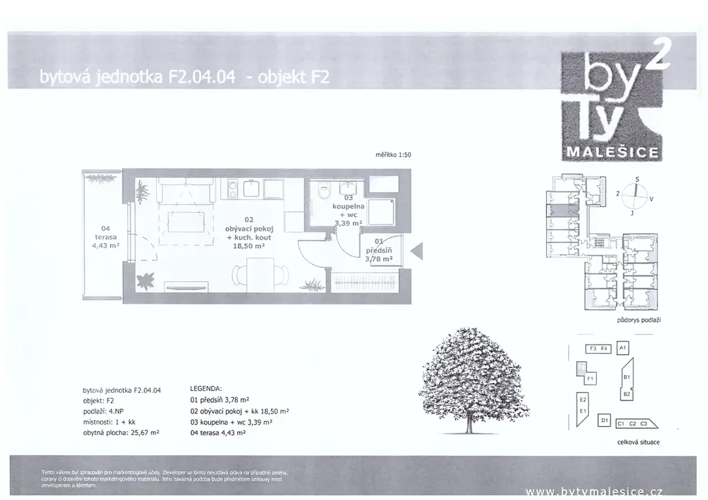 Byt o ploše 24 m2 + balkón 4,5 m2 se nachází v 4 patře ze 8 novostavby s výtahem.