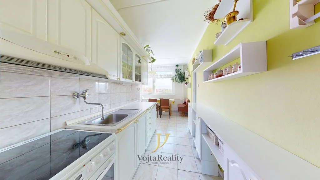 Nesporným benefitem umístění bytu v budově je velkorysý výhled do okolní krajiny, jemuž vévodí místní dominanta, hrad Helfštýn. Kuchyně s obývacím pokojem jsou orientovány na severovýchod, zbylé místnosti včetně lodžie jsou jihozápadním směrem.