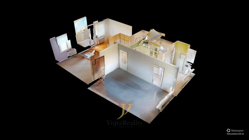 Fotografie bez nábytku byly pořízeny prostřednictvím grafické postprodukce a slouží výlučně pro porovnání dispozice, s či bez vybavení.