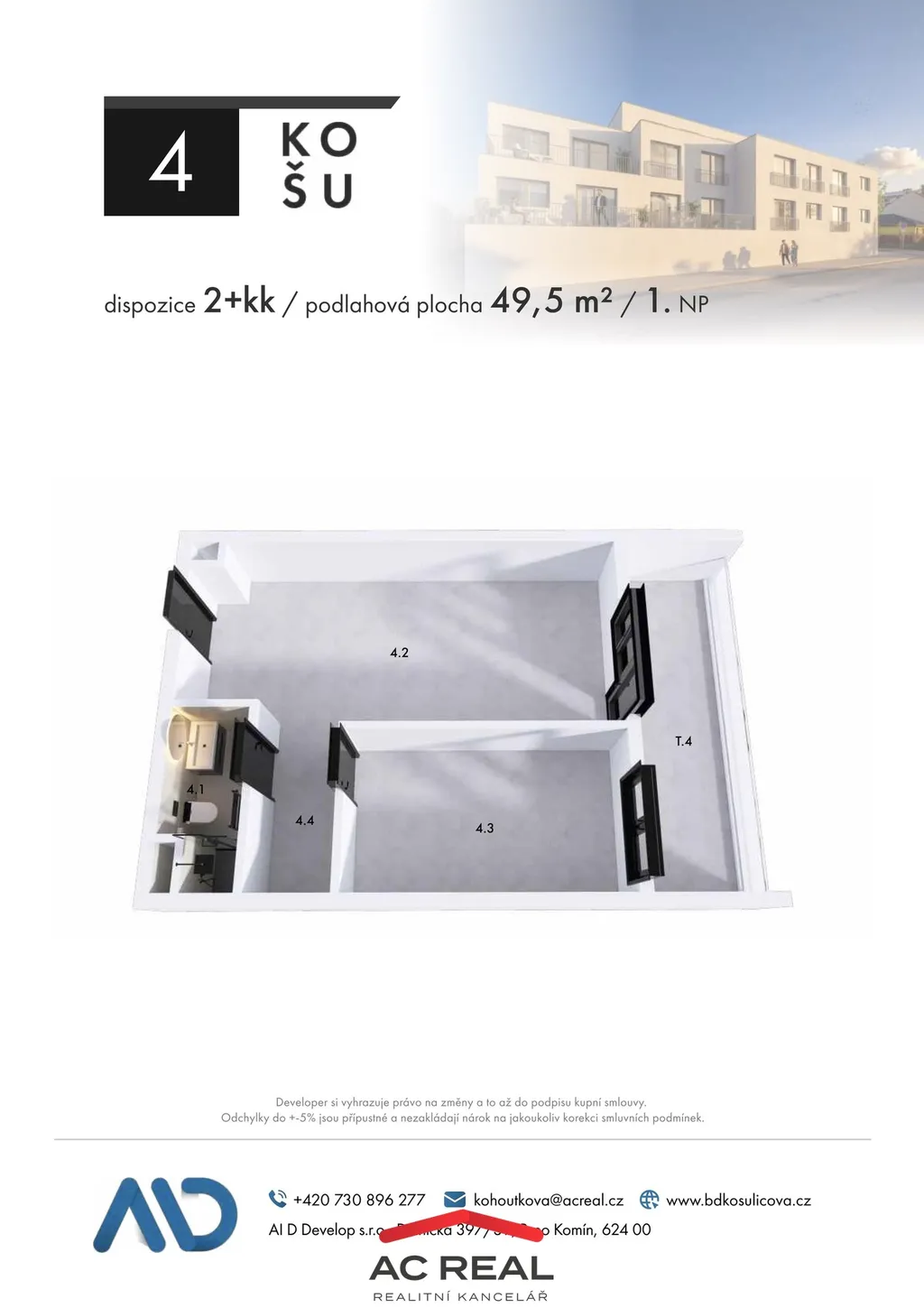 Představujeme vám moderní byt 2+kk s terasou v novostavbě rezidenčního projektu KOŠU, který přináší komfortní bydlení s důrazem na kvalitu, technologie a úsporný provoz. Projekt se nachází v dynamicky se rozvíjející lokalitě Brno – Horní Heršpice, s výbornou dostupností do centra i ke klíčovým pracovním a vzdělávacím místům.