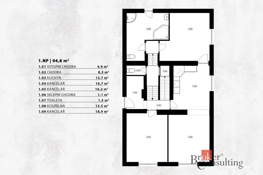 Přízemí: ideální jako kanceláře, ordinace či bydlení