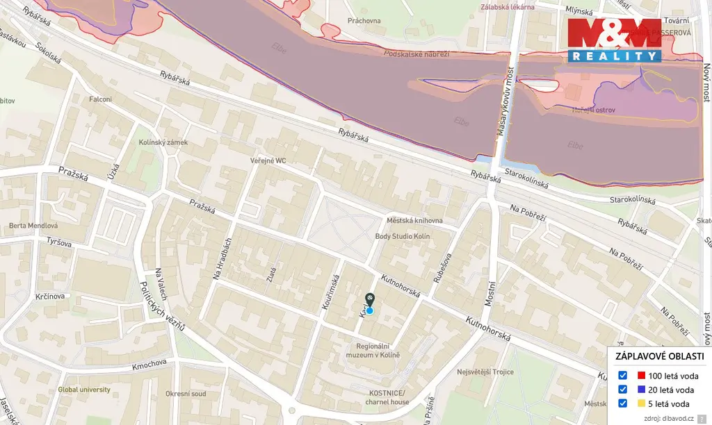Pronájem bytu 1+kk, 25 m², Kolín, ul. Karlova