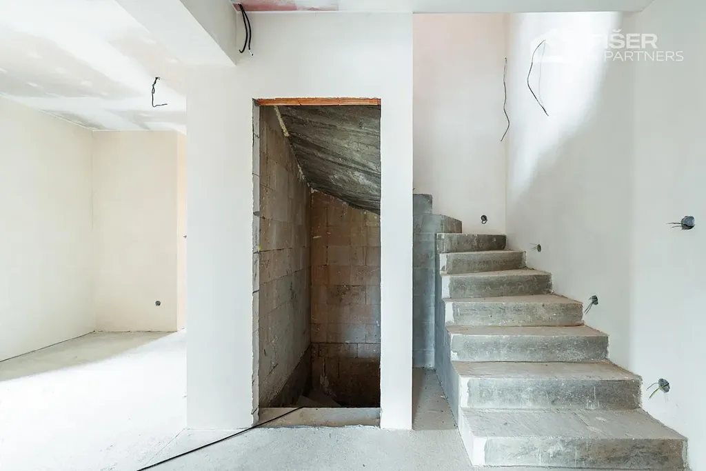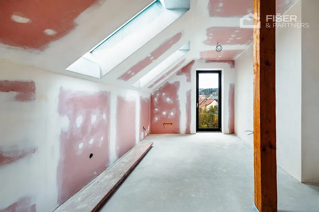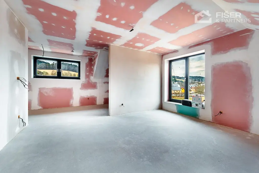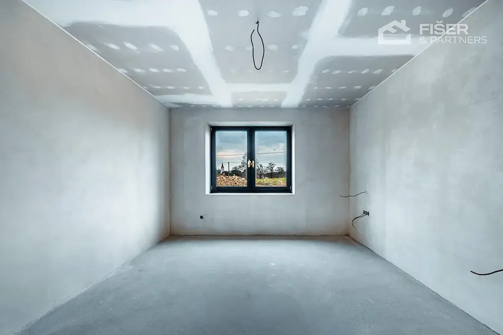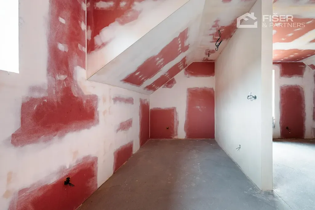 Nemovitost je ve fázi dokončených omítek veškeré rozvody vody, elektřiny i odpadů jsou již hotové. Budoucí majitel tak řeší už jen finální úpravy, jako jsou obklady, podlahové krytiny a vybavení nábytkem.