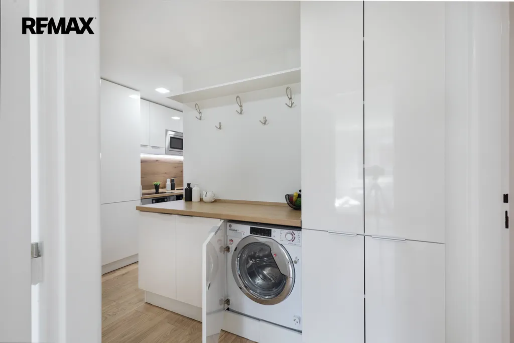 ✅ Kuchyňská linka na míru s vestavnými spotřebiči: lednice, indukce, el.trouba, MW trouba, plně integrovaná myčka š. 45 cm, digestoř s odtahem, pračka se sušičkou pod deskou v lince, potravinová skříň na míru, dostatek úložného místa