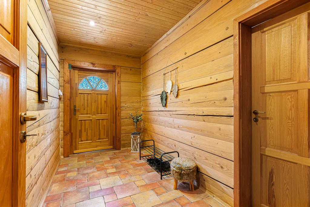 • Masivní dřevostavba z kvalitního smrkového dřeva (zkolaudována v roce 2013, střešní krytina Bramac).