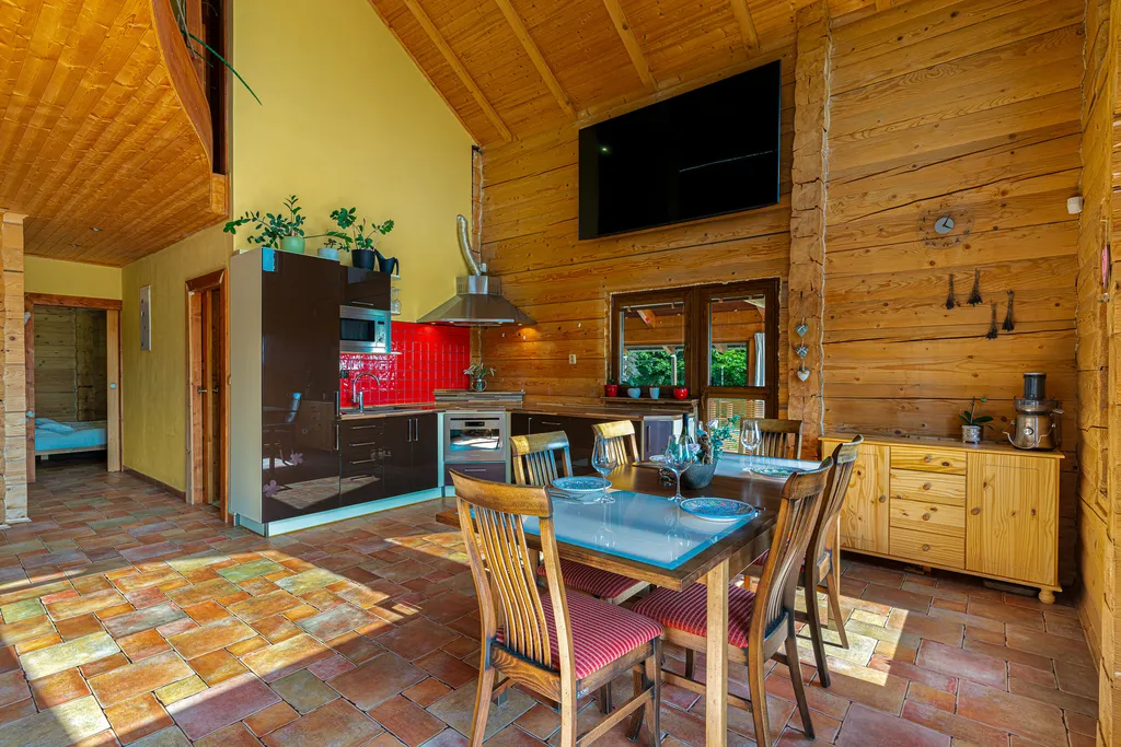 • Místo vás okouzlí panoramatickými výhledy a kouzelnými západy slunce, které si užijete ať už z hlavní terasy, z galerie v patře či z prosklené terasy orientované na JV stranu.