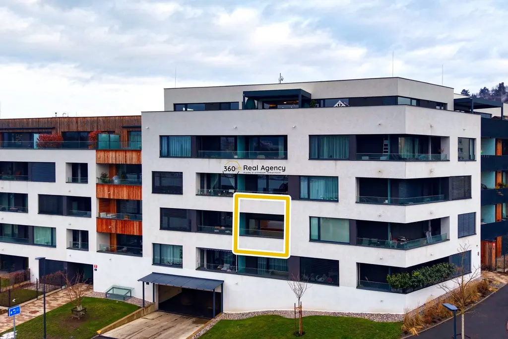 Byt byl navržen s důrazem na maximální funkčnost, světlo a nadčasovost. Dominantou je otevřený obytný prostor s moderní, plně vybavenou kuchyňskou linkou se spotřebiči Bosch, který plynule navazuje na klidnou lodžii orientovanou do zeleně. Ta nabízí dostatek prostoru pro pohodlné posezení – ideální místo pro ranní kávu i večerní relax.