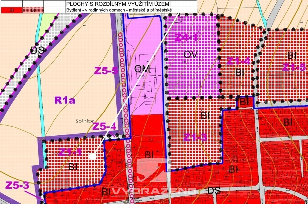 Dle územního plánu je pozemek určen k výstavbě rodinného domu a je součástí připravované obytné lokality.