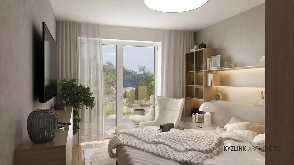 Byt o podlahové ploše 62,7 m² vás okouzlí promyšleným dispozičním řešením, velkým množstvím světla a kvalitním provedením. O návrh interiéru i vizualizace se postarali renomovaní architekti studia Kyzlink, známí svým důrazem na detail, funkčnost i nadčasový styl. V bytě najdete elegantní předsíň s přípravou na skleněnou příčku a technickou niku, třívrstvou dřevěnou podlahu od KPP, podlahové vytápění, a především koupelnu od Koupelen Ptáček s walk-in sprchovým koutem, nikou pro LED osvětlení a nadstandardními velkoformátovými obklady značky Refin.