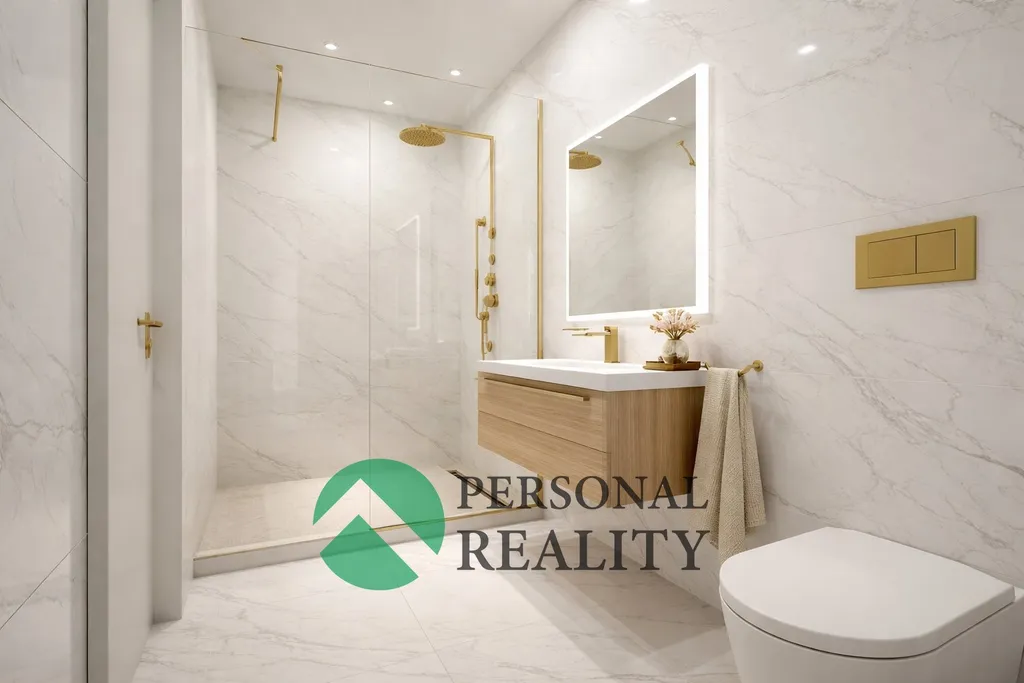 V prvním nadzemním podlaží najdete garáž pro dva vozy, šatnu, pracovnu s vlastní koupelnou, dva samostatné pokoje s terasami, koupelnu a WC.