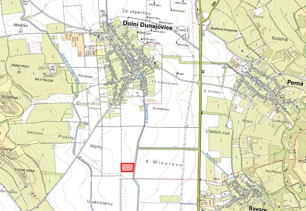 Předmětem prodeje je rozsáhlý ucelený pozemek orné půdy jižně od obce Dolní Dunajovice.