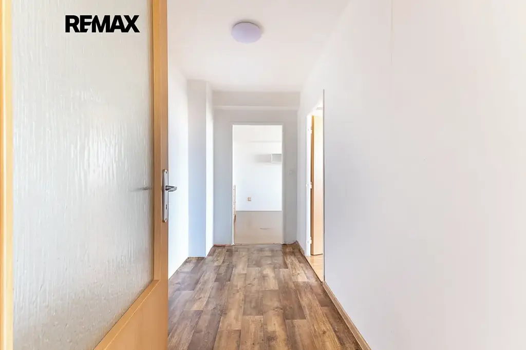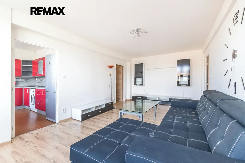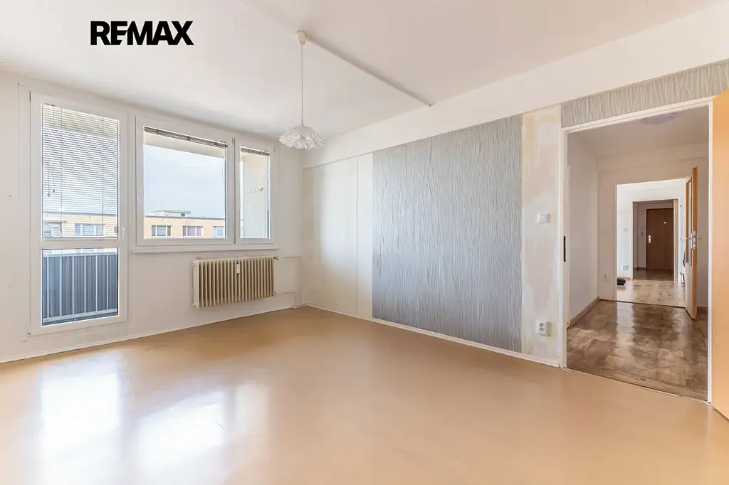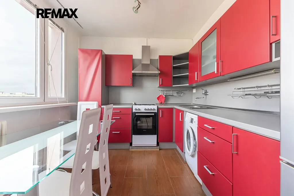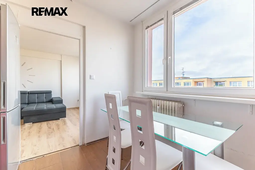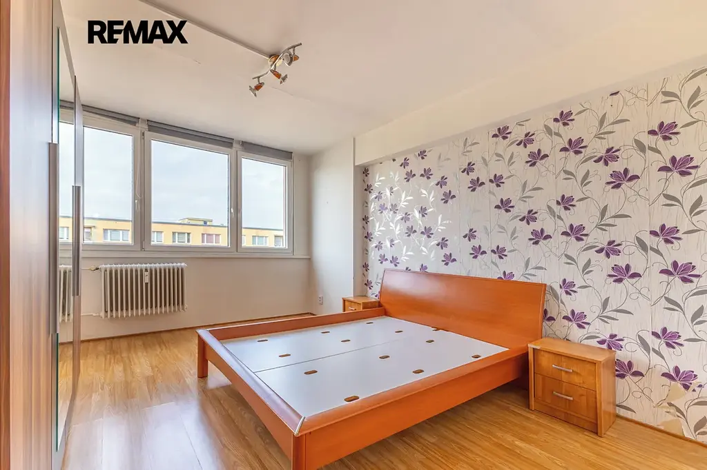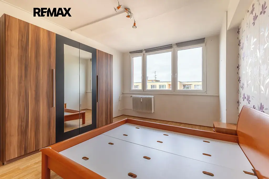 Nabízíme světlý a prostorný byt 3+1 o podlahové ploše 88,7 m², který se nachází v 9. patře kompletně revitalizovaného panelového domu. Byt je velmi dobře řešený, má 2 neprůchozí pokoje, prostorný obývací pokoj, kuchyňský kout a lodžii o výměře 3 m² přístupnou z jedním z pokojů. K bytu náleží také 2 sklepní kóje (celkem 4 m²). Dům prošel kompletní revitalizací - zateplení, plastová okna, společné prostory včetně kamerového systému a výtahu.