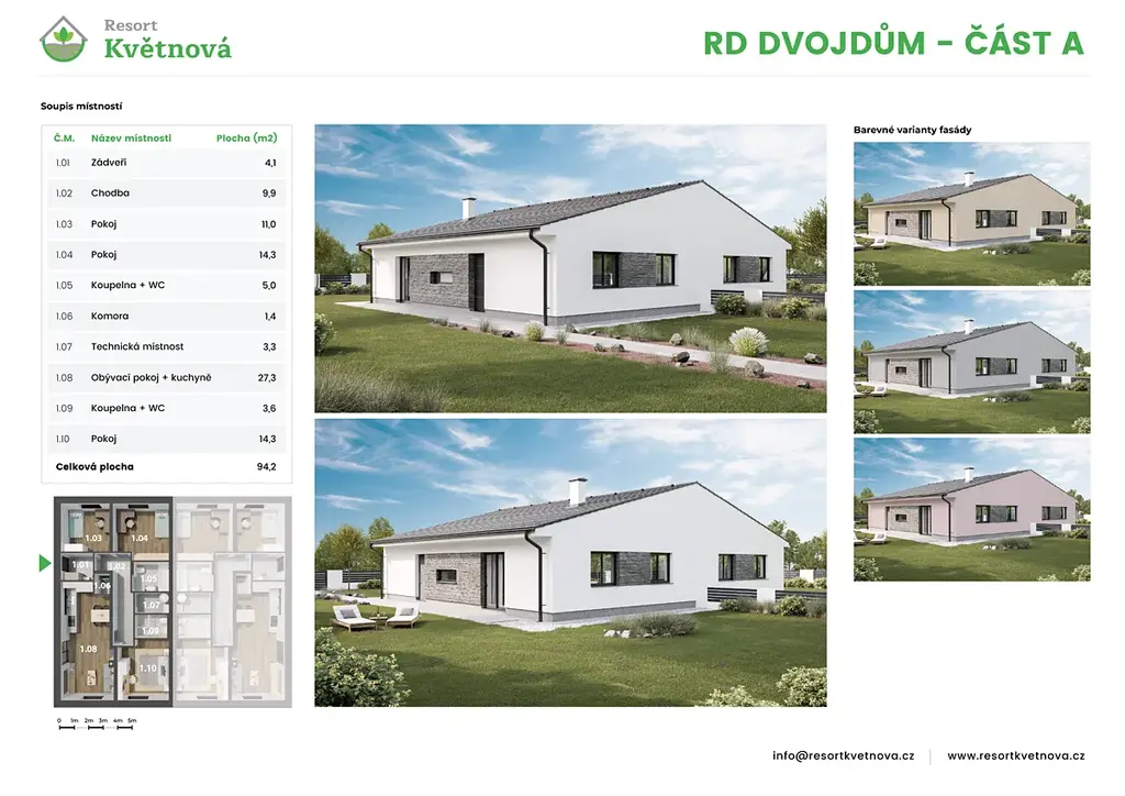 • Cena za samostatný RD: 4.350.000 Kč (vč. DPH)