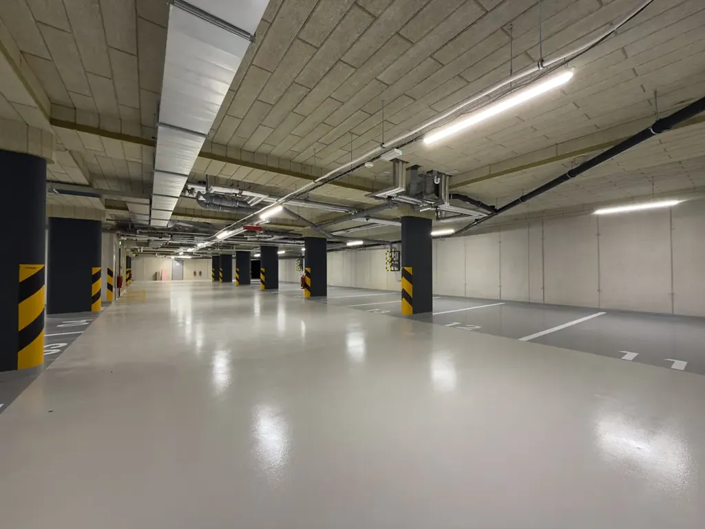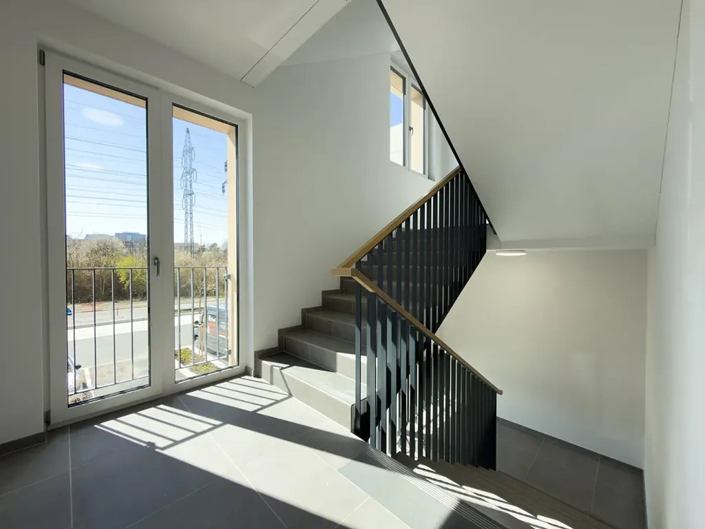Interiér s důrazem na detail a praktičnost tvoří předsíň s vestavěnou skříní, prostorný obývací pokoj s elegantní, plně vybavenou kuchyní a vstupem na balkon, ložnice s velkorysým úložným prostorem a koupelna s vanou a vestavěným nábytkem. Veškeré vybavení je navrženo individuálně na míru v moderním designu. Součástí nájmu je sklep a parkovací stání v podzemní garáži.