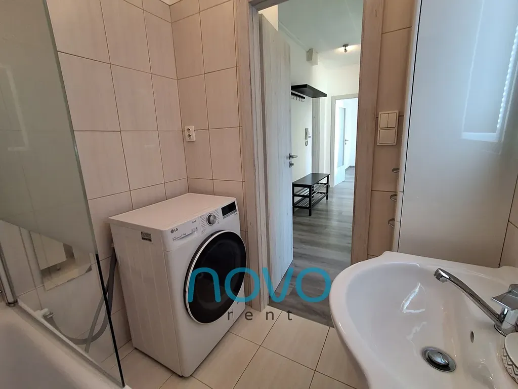 Celý byt je vybaven praktickým nábytkem a kvalitními spotřebiči včetně pračky se sušičkou.