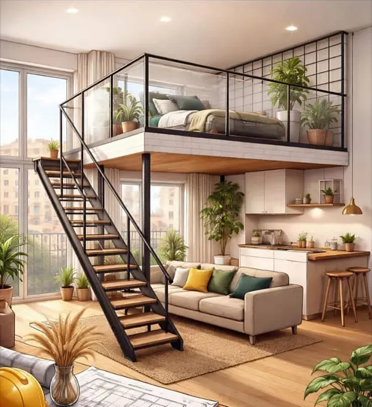 Dispozici bytu je možno využít jako "studentský" byt a pokoj rozdělit na obytnou zónu a zónu na spaní (viz. vizualizace).