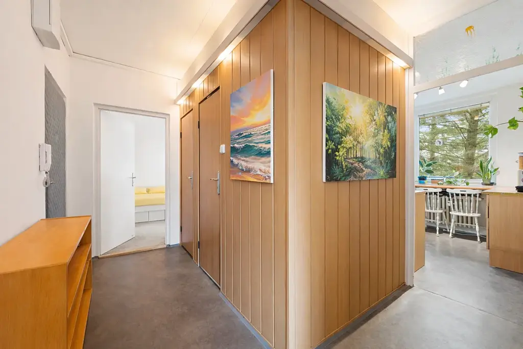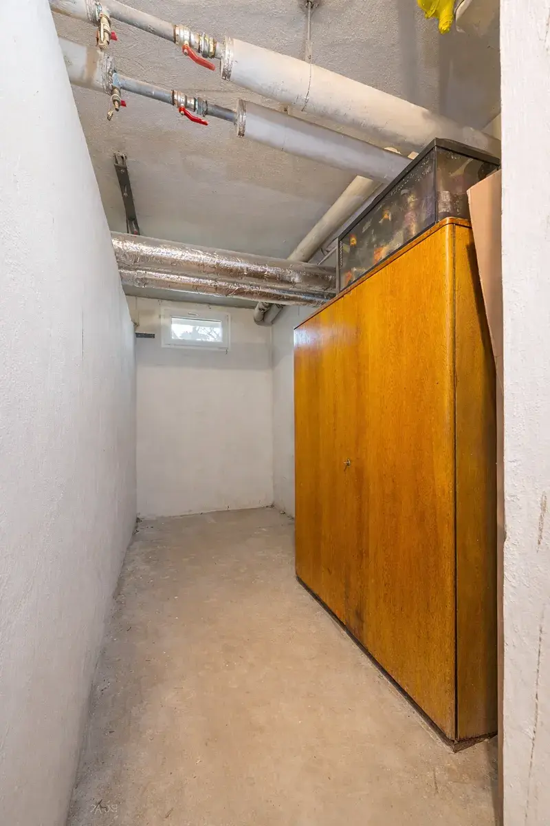Velkým benefitem jsou dvě lodžie, které jsou přístupné jak z kuchyně, tak velkého pokoje. Oceníte i dostatek úložného místa v podobě šatny o rozměru 3,84 m²a sklepní kóje v suterénu budovy o ploše 5,88 m².