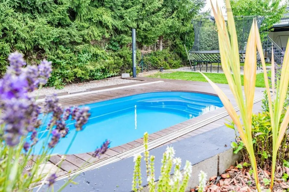 Nemovitost je vkomponována do přírodní scenérie tak, aby byla zachována intimita a komfort. Součástí pozemku je vyhřívaný bazén o rozměrech 6 × 3 metry a samostatný dětský domek, který lze využít také jako letní kuchyň nebo domek pro hosty. Z pozemku je přímý vstup do přilehlého lesa, což umocňuje spojení s okolní přírodou.