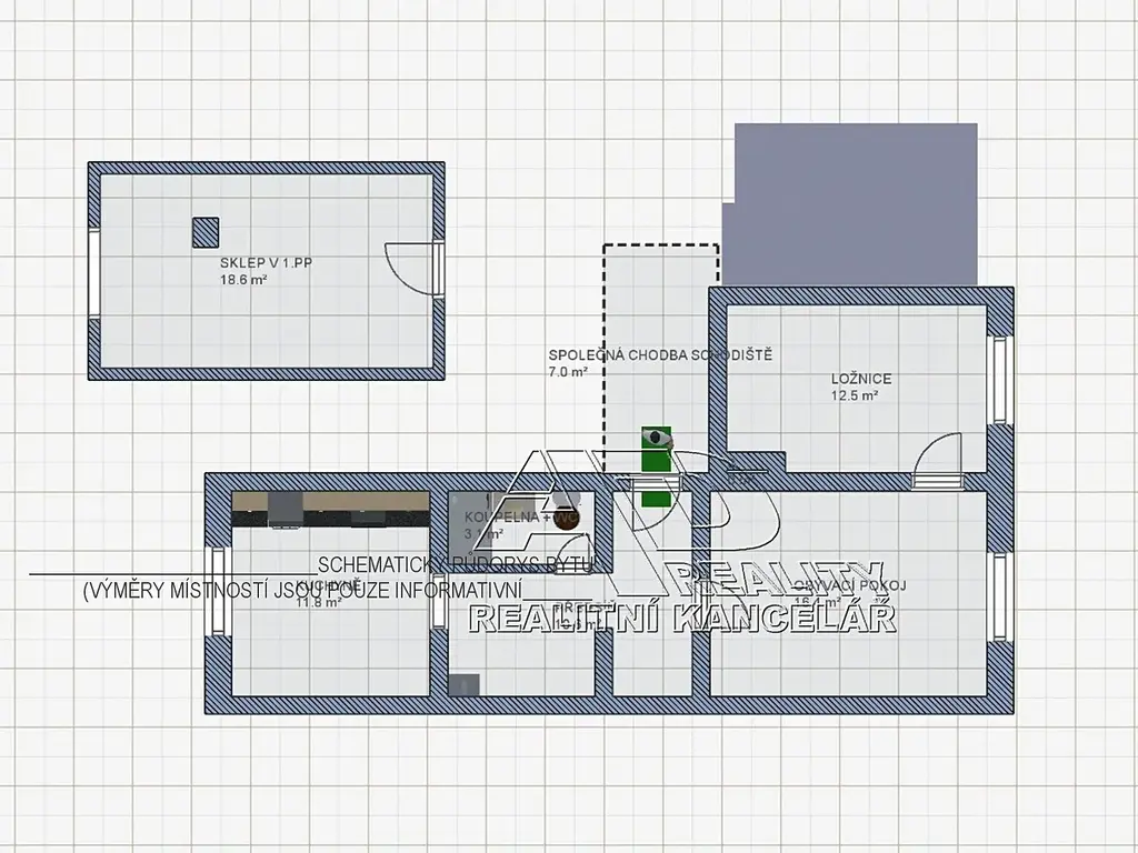 Společné prostory domu jsou čisté a průběžně uklizené. K bytu je k dispozici samostatný suchý sklep (pod uzávěrem) o výměře cca [18m2].