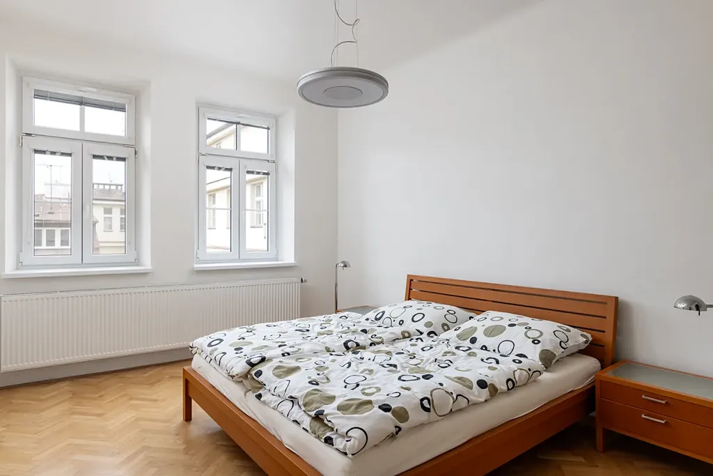 Světlý a plně vybavený byt 2+1 o podlahové ploše 68 m² se nachází ve 4. nadzemním podlaží domu v ulici Ve Smečkách, v samotném centru Prahy. Byt nabízí funkční a praktickou dispozici s dostatkem úložného prostoru, včetně samostatné šatny navazující na ložnici. Podlahy dřevěné - parkety / dlažba v koupelně a WC.