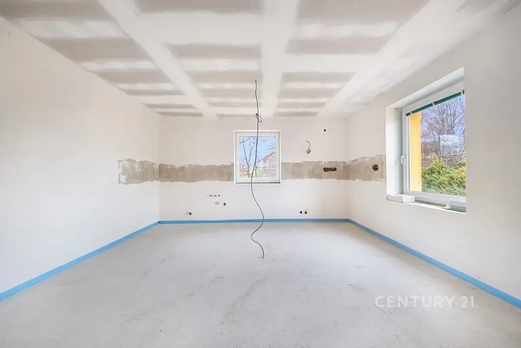 Kompletně byly vybudovány nové rozvody elektřiny, vody i odpadů – vše je tedy zcela nové. To nejtěžší už máte hotové. Můžete tak přeskočit fázi bourání i hrubých prací a přejít rovnou k té příjemnější části: výběru podlah, kuchyně a designu, který vdechne domu vaši osobnost.