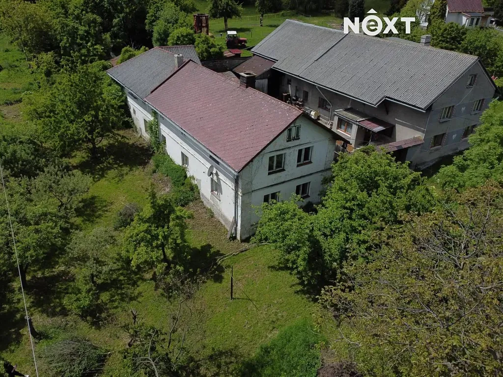 Obytná část - přízemí: kuchyň propojenou s obývacím pokojem, 2 samostatné pokoje, koupelnu s WC, patro: 2 prostorné pokoje a rozlehlou půdu s potenciálem pro vybudování dalšího obytného prostoru.