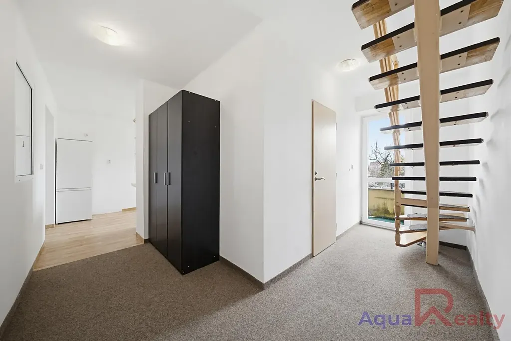 Byt je umístěný ve 3. a 4. podlaží a vznikl propojením klasického bytu s přestavěným podkrovním prostorem. Právě toto řešení vytváří jedinečný charakter nemovitosti a zároveň ponechává další potenciál druhá část půdního prostoru nabízí možnost budoucího odkupu od SVJ a následného rozšíření bytu o další místnosti dle vlastních představ.