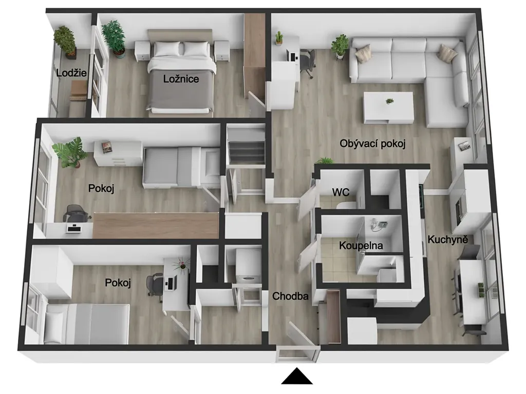 Byt je situován ve zvýšeném přízemí z celkových 8 podlaží revitalizovaného panelového domu. Velkou výhodou je praktické dispoziční řešení s dostatkem prostoru pro rodinné bydlení.