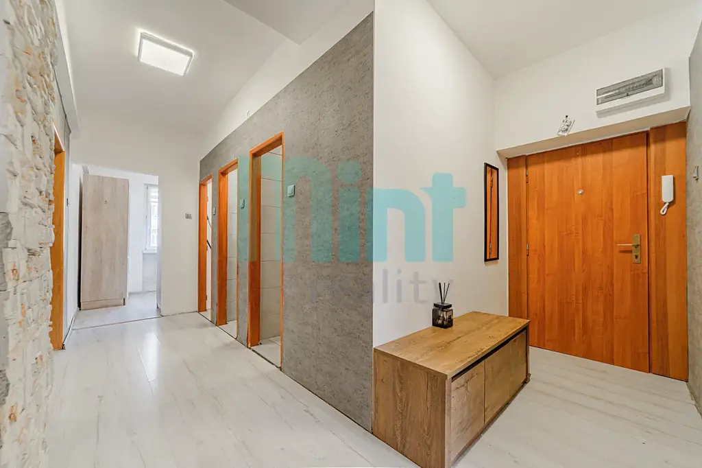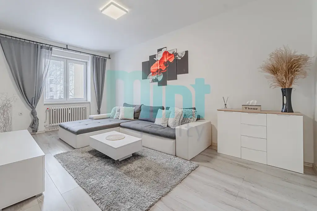 Interiér bytu byl průběžně modernizován, a tak zde najdete částečně nové rozvody elektřiny a zděné jádro. V bytě jsou laminátové podlahy, které dodávají prostoru moderní a vzdušný vzhled. Koupelna disponuje vanou, zatímco toaleta je samostatně, což zvyšuje komfort užívání.