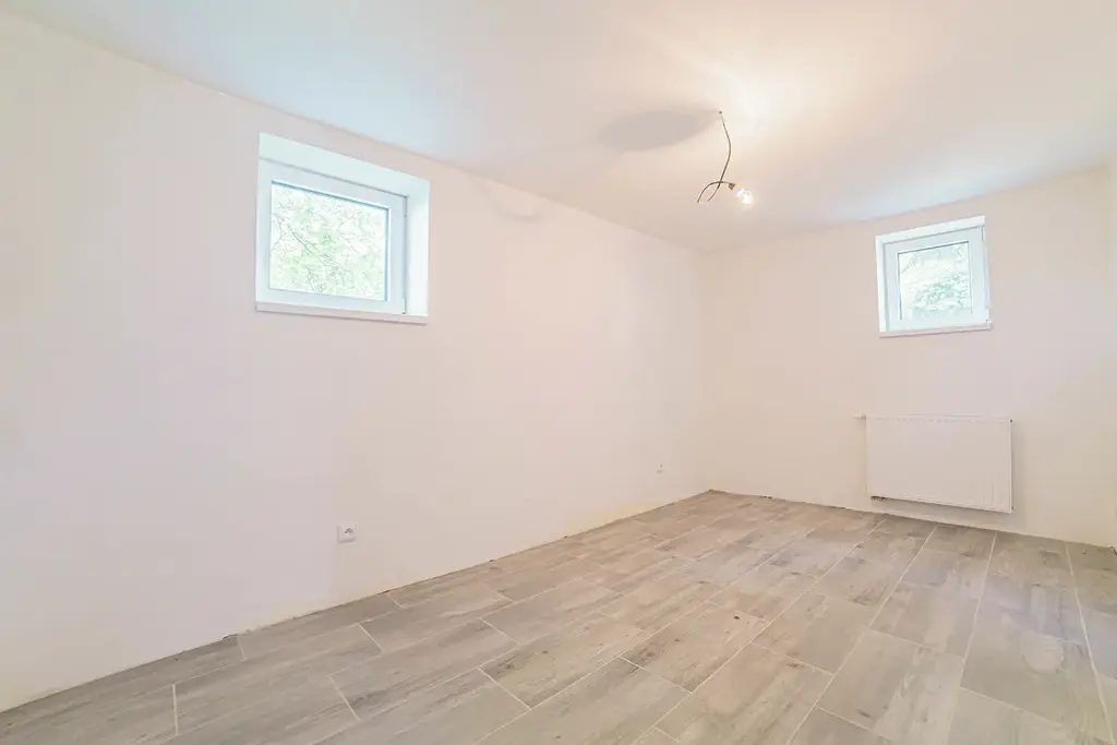 • V celém domě nové rozvody vody v plastu, nové rozvody plynu, plastová okna, nové rozvody elektřiny, štukové omítky, podhledy SDK, dlažba na podlaze.