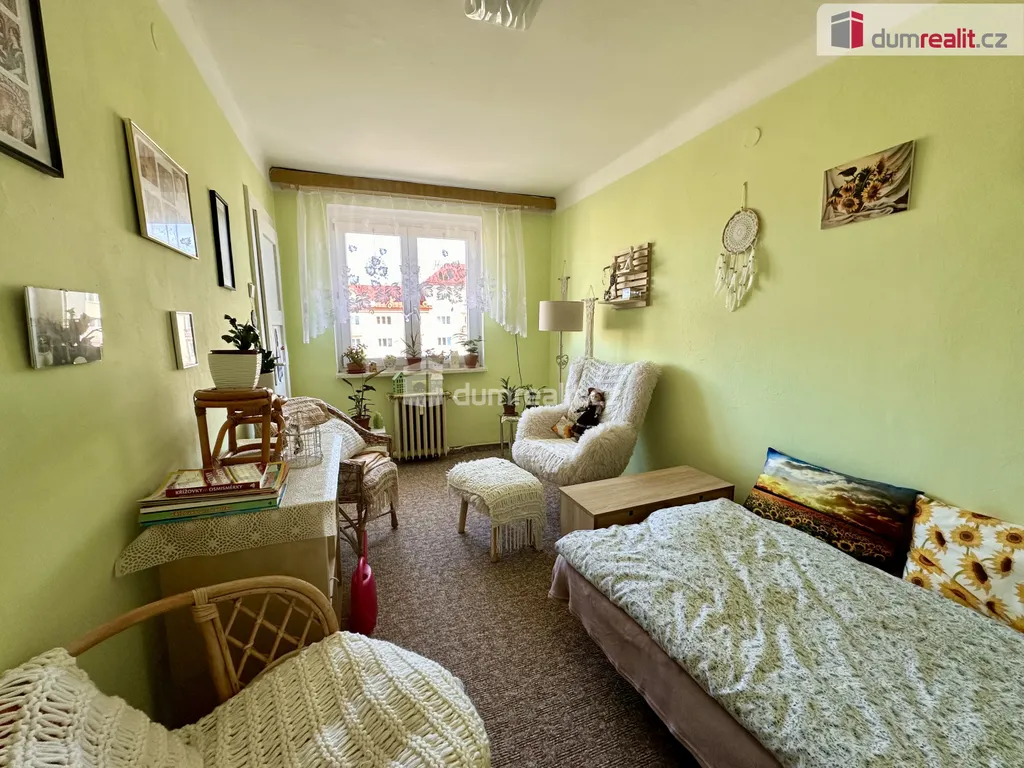 prodej bytové jednotky 2+1 na ul. Hlavní třída v Ostrově o celkové ploše 75,4 m² ve druhém patře cihlového domu. Bytová jednotka je předělána na 3+1 s kuchyňskou linkou na chodbě a velkým froncouzkým oknem, prostornou koupelnou, samostatnou toaletou a třemi místnostmi, z čehož jedna má balkon na jižní stranu. Byt je v původním, ale velmi zachovalém stavu. Okna jsou plastová, v místnostech jsou původní parkety. Dům po celkové revitalizaci. K bytu náleží dva sklepy o rozměru 8,3 m² a 4,6 m², které jsou započítány v ploše bytu. Dům se nachází na velmi pěkném místě v blízkosti náměstí a přilehlého parčíku. Fond oprav 754,- Kč na celou bytovou jednotku. Pro majitelku bytové jednotky současně hledáme menší byt nejlépe 1+1 ve zvýšeném přízemí nebo v panelovém domě s výtahem. Je tedy možná i výměna s doplatkem. Ev. číslo: 655335.