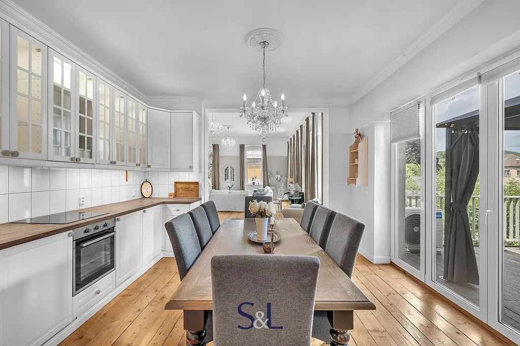 – prostorná kuchyně s jídelním stolem, plynovým i elektrickým sporákem, troubou, myčkou a přímým vstupem na terasu