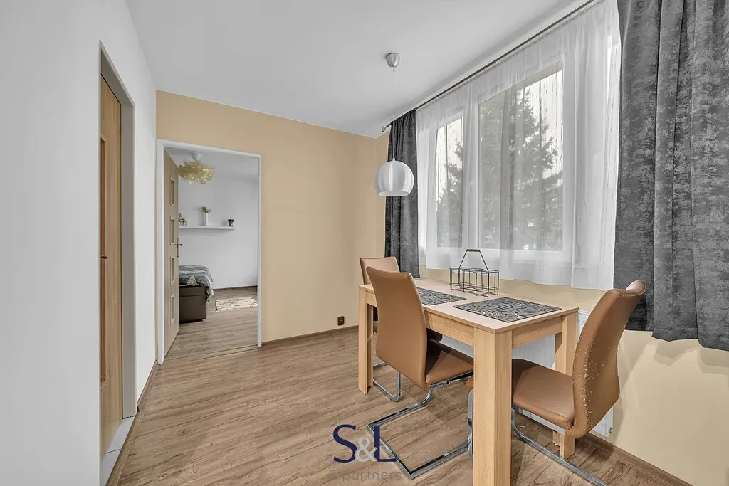 Byt o celkové ploše 55 m² je ideální volbou pro jednotlivce, pár nebo mladou rodinu. Vše je připraveno k okamžitému nastěhování – kuchyň je plně vybavená včetně spotřebičů, v koupelně najdete vanu i pračku, WC je samostatné. Byt má dva neprůchozí pokoje, přičemž z jednoho z nich je přímý vstup na lodžii s posezením. K bytu náleží také sklep o velikosti 3 m².