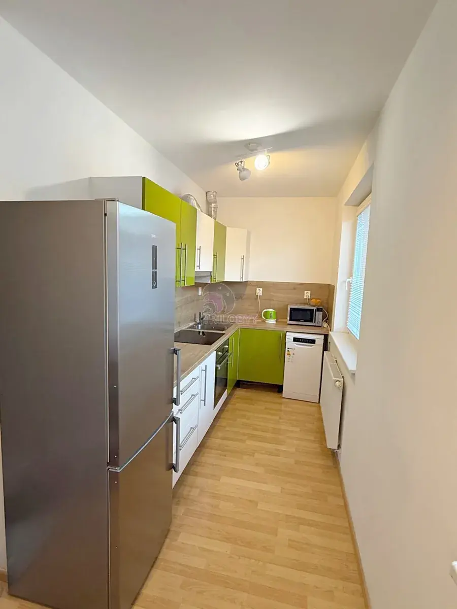 Nabízíme k dlohodobému  pronájmu útulný a světlý byt s dispozici 2+kk, který se nachází ve 2.patře  domu s výtahem  postaveného v roce  2009. Orientace oken je na jih, do klidného vnitrobloku, a součástí vybavení je  kuchňská linka se spotřebiči (možnost ponechání instalované, nové myčky za 4.000,- Kč), v koupelně je k dispozici pračka. Další přenechání zařízení a vybavení bytu lze dohodnout. Byt i dům jsou ve velmi dobrém stavu umožňujícím klidné  bydlení v žádané lokalitě s veškerou občanskou vybaveností a perfekním spojením MHD do centra Prahy. Poplatky celkem pro 2 osoby cca 4.200,- Kč/ měs. včetně spotřeby pylnu a elektřiny. Vhodné pro max 3 osoby. Volné od 1.6.2026.
