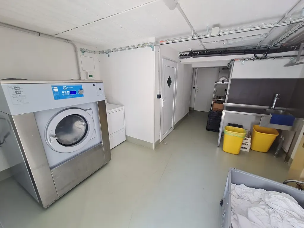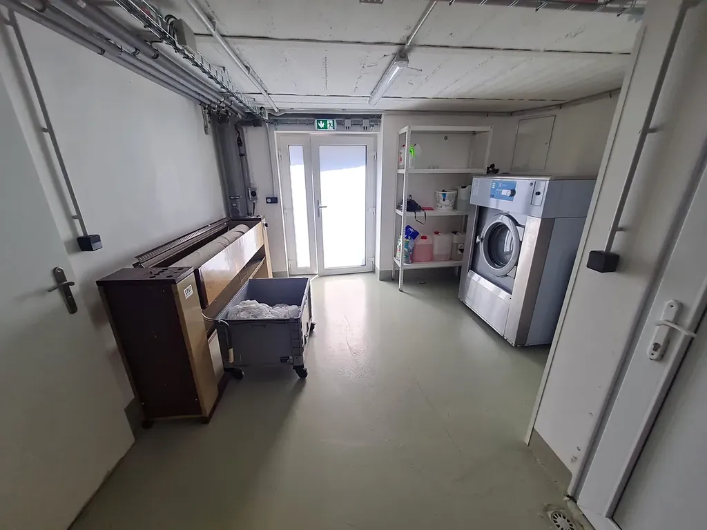 V 1. PP nalezneme spoustu technických místností, například jak kotelnu, velký chladící box, prádelnu, mandlovnu a další.