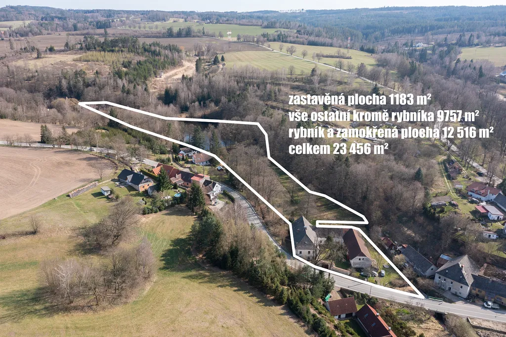 Areál historické usedlosti s vlastním vodním prvkem a pozemky o výměře 2,3 ha v krajině České Kanady je po 116 letech vlastnictví jedné rodiny na prodej.