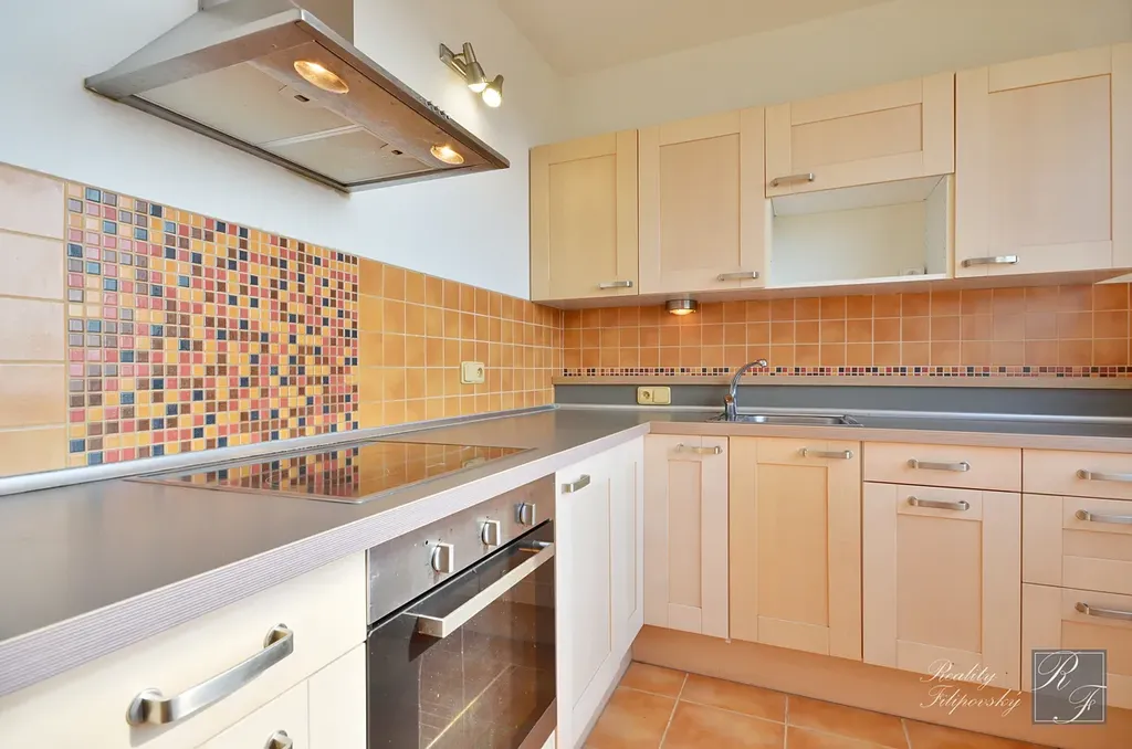 Byt má zděné jádro, zrekonstruovanou elektroinstalaci v mědi, je vybaven kuchyňskou linkou se sklokeramickou deskou, elektrickou troubou a odsavačem par. V koupelně najdeme sprchový kout, závěsné WC, umyvadlo se skříňkou a přípojku pro pračku. Na podlahách v pokojích je kvalitní lino, ve zbývajících místnostech je keramická dlažba. K jednotce náleží sklepní kóje.