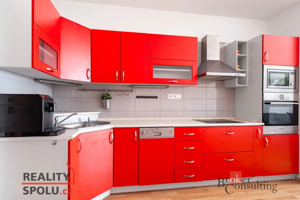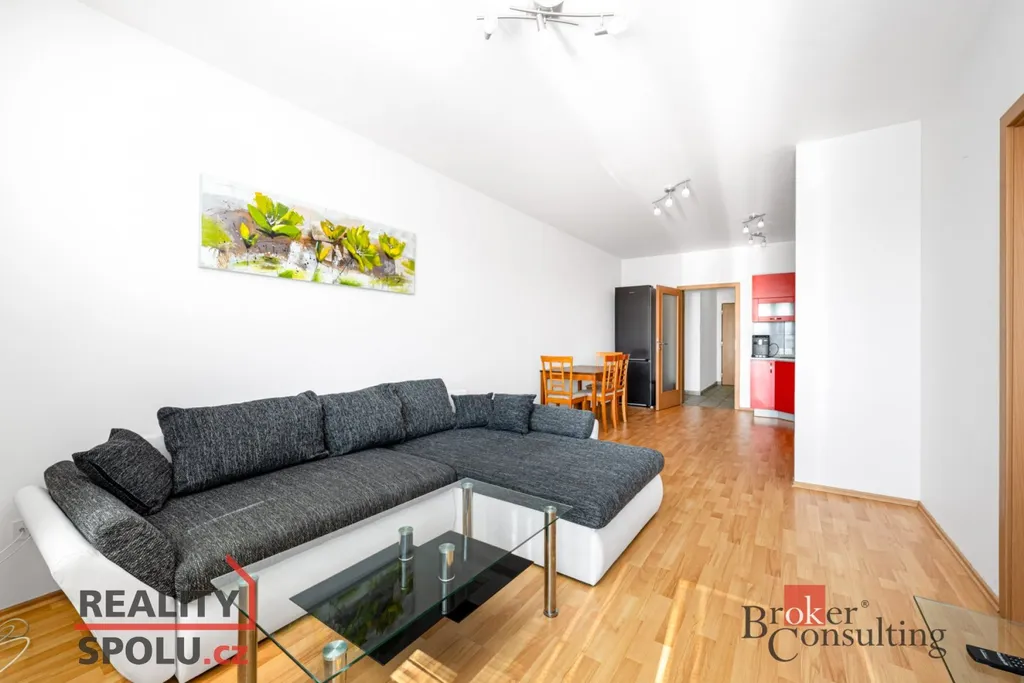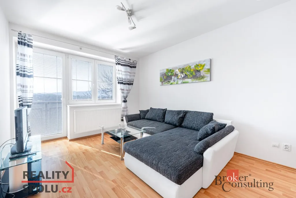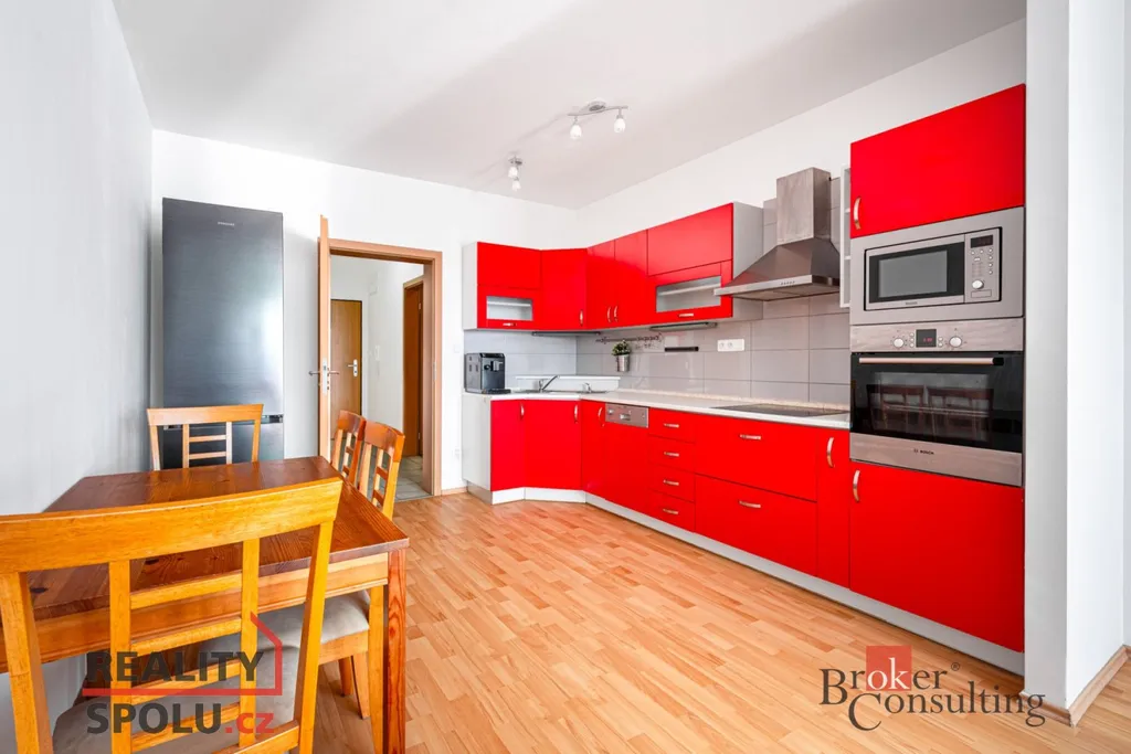 Nabízíme byt 2+kk o celkové výměře 56 m² s balkonem a s vlastním parkovacím stáním ve 4. NP domu k dlouhodobému pronájmu. Díky jižní orientaci je byt světlý a nabízí krásný výhled do zeleně. Součástí vybavení bytu jsou: vestavěná skříň na chodbě, skříňka v koupelně, v kuchyni stůl se čtyřmi židlemi, vestavěné spotřebiče včetně myčky, rozkládací gauč, konferenční stolek, TV, velká šatní skříň v ložnici, dvě židle a stolek na balkoně.