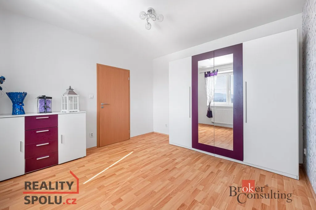 Dispozice: obývací pokoj s kuchyňským koutem, útulná ložnice, koupelna s WC a místem pro pračku, vstupní chodba. K bytu náleží sklepní kóje.