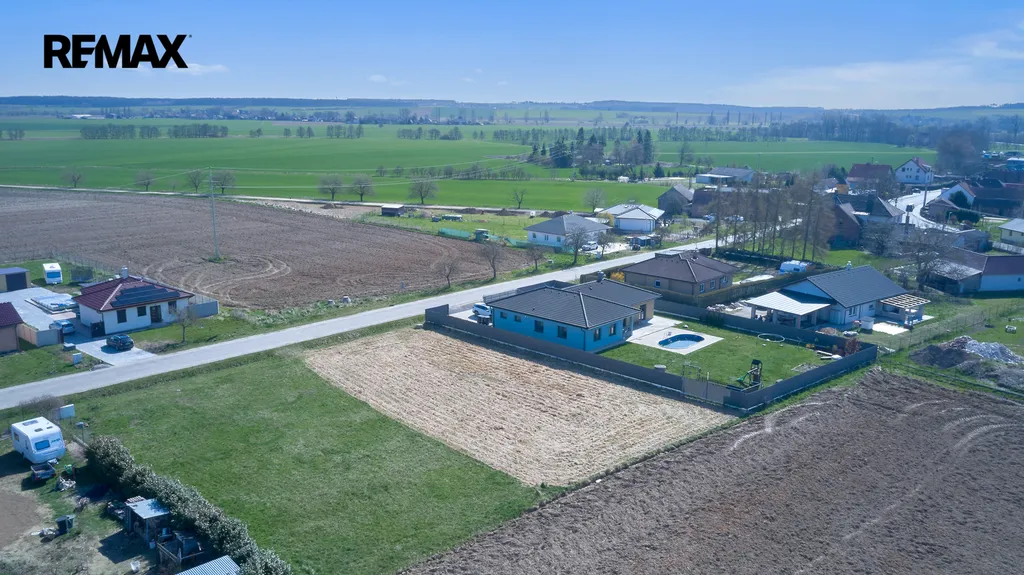 Pozemek ve tvaru pravidelného obdelníku o rozměrech přibližně 20 mx43 m je rovinatý, výborně orientovaný a jeho celková výměra je 1004 m2. Obecní vodovodní řád je veden na druhé straně silnice, kanalizace přímo na pozemku a elektřina na hranici pozemku.