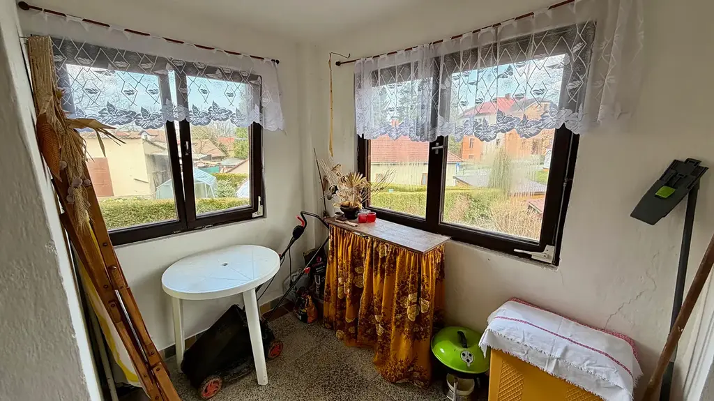 Součástí nemovitosti jsou také dva sklepy a menší zahrada o výměře přibližně 100 m². Velkou výhodou je půdní prostor s možností vestavby dalších obytných místností, čímž lze výrazně rozšířit užitnou plochu domu.