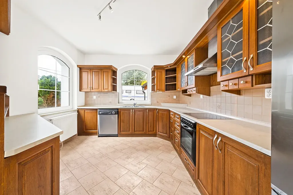 Cihlový dům z roku 2000, ve velmi dobrém, udržovaném stavu, odpovídajícím době výstavby a užití, 2x kuchyně, 2x koupelna, 2x WC, vytápěný tepelným čerpadlem, s možností vytápění kotlem na topný olej a elektrokotlem, prostorná garáž s dílnou, na zahradě zahradní domek.